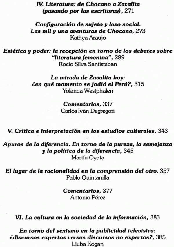 En los últimos años la revalorización de lo simbólico ha hecho de la cultura un área de creciente interés para estudiosos de diversas disciplinas. Antropólogos, filósofos, historiadores, sociólogos, críticos literarios, psicoanalistas, están tratando de responder a las mismas interrogantes: ¿Cómo así los fenómenos culturales (re)producen relaciones de poder? ¿Qué regímenes pulsionales ha instaurado la cultura en nuestros cuerpos? ¿En qué medida los individuos podemos reaccionar frente a las imposiciones que nos fundamentan? Tratar de responder estas preguntas, desde un diálogo con nuestra realidad compleja e inacabada, fue el reto que nos propusimos. Y en este libro ensayamos las respuestas desde una perspectiva post-disciplinaria que asumiendo la fractura de los sistemas filosóficos totalizadores continúa nutriéndose de ellos.