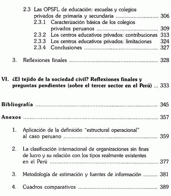 Uno de los fenómenos más notables ocurridos en el Perú durante las dos últimas décadas ha sido la emergencia y creciente visibilidad de las organizaciones privadas sin fines de lucro (OPSFL), como actores clave en casi todos los ámbitos de nuestra sociedad. Frente a la debilidad del Estado en la gestión de las políticas sociales, y a la limitada capacidad del sector empresarial para resolver las necesidades económicas de amplios sectores de la población, las OPSFL han emergido con una lógica de operación distinta de la gubernamental y de la empresarial. A diferencia de las primeras que buscan proporcionar bienestar público como fuente de su propia legitimidad y de las segundas que están orientadas hacia la búsqueda del lucro y el beneficio privado, las OPSFL son entidades que, a pesar de su carácter privado, se dirigen a satisfacer necesidades colectivas o de interés público.