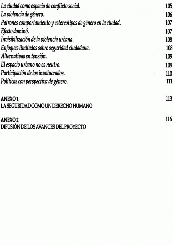 Las preocupantes indices d violencia urbana han colocado a la seguridad ciudadana como una prioridad de los gobiernos y la opinión publica en nuestro paises. Diariamente, las noticias nos traen historias de violencias y asaltos perpetrados en las calles y hasta en los taxis y otros vehiculos de transporte publico. Las autoridades vienen respondiendo con políticas policiales de corte represivo y punitivo, sin considerar las opiniones y experiencias de la mitad d la población de la s mujeres.
