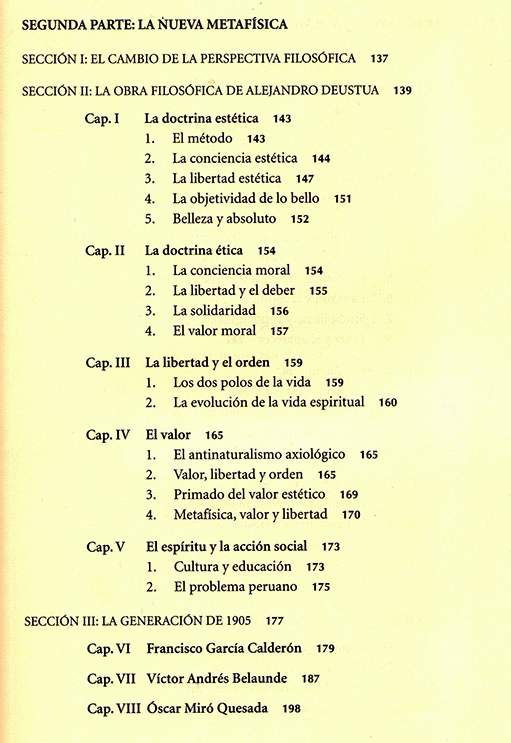 El libro testimonia el esfuerzo lento, gradual, y de hecho inconcluso, por desplazarse de un pensamiento de cuño foráneo a la construcción de una filosofía nacional auténticamente representativa del ser del hombre peruano.