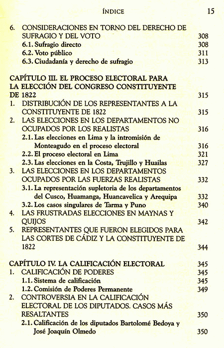 El mérito del libro es poner al descubierto, un hecho no siempre conocido de nuestra historia colonial: la falta de verdad y de libertad electorales tan característicos de la República, parte de la pesada herencia institucional y moral de la Colonia.
