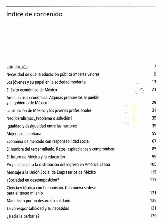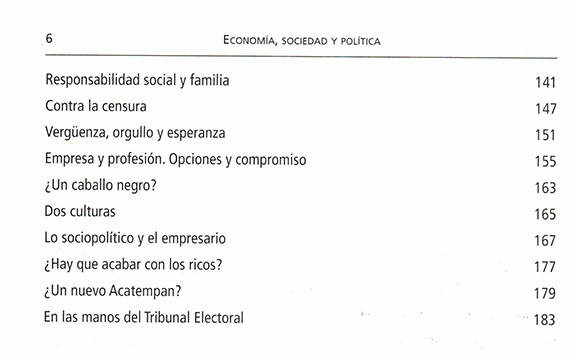 El contenido de esta obra rompe con la exposición metódica clásica de un libro, ya que esta constituido por la compilación de conferencias y pequeños artículos correspondientes al periodo de 1988 al 2006. El fondo de estas conferencias y artículos es muy variado, y muchas veces responde a la necesidad de tratar temas imperantes en un momento determinado sobre los cuales exprese mis puntos de vista, casi siempre desde mi visión de empresario.
