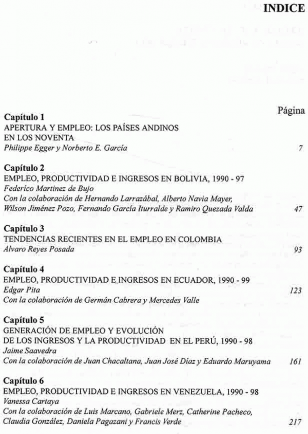 Apertura Económica y Empleo: Los Países Andinos en los Noventa / Philippe Egger, Norberto E. García, Oficina Internacional del Trabajo, [Impreso]