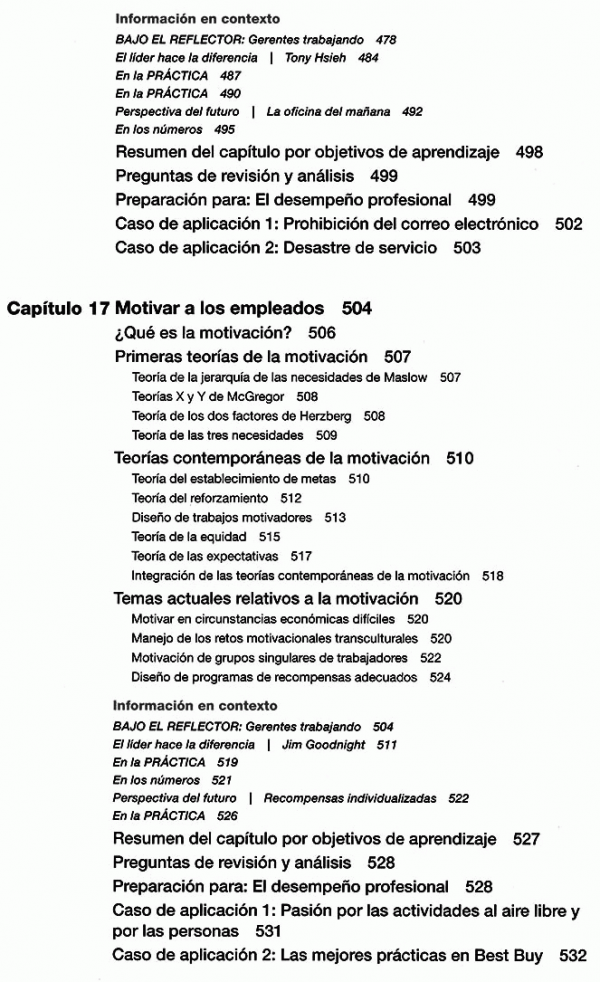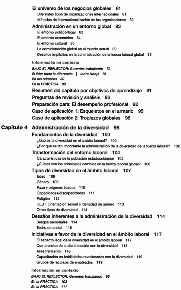 específicamente redactado para cada capítulo, con la intención de motivar a los alumnos en el estudio de la administración como algo que la gente hace en las empresas .