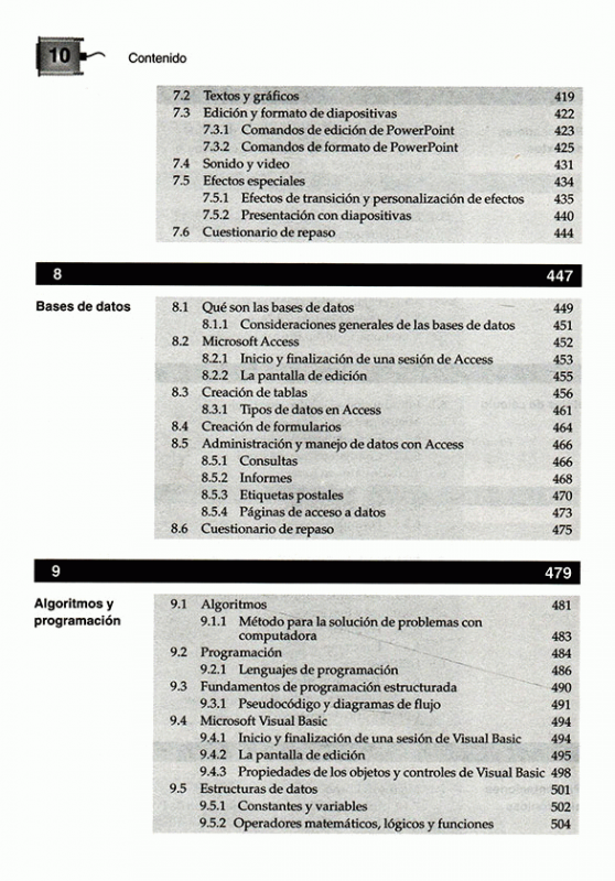 La tecnología de la microelectrónica viene avanzando, desde la segunda mitad del siglo XX a pasos agigantados. En los albores del tercer milenio, se vislumbran acontecimientos científicos y tecnológicos que a pesar de ser impresionantes no nos causarán mayor asombro, ya que hemos aprendido a ver con naturalidad los cambios tecnológicos. En este contexto, la informática se ha hecho una materia indispensable para todos los estudiantes, independientemente de su campo académico. Las computadoras se utilizan en casi todas las actividades del ser humano: en el hogar, en las empresas, en las escuelas y en los centros de investigación. Esta obra ha sido concebida a partir de un análisis meticuloso de la mayoría de programas académicos de nivel medio superior y superior, por lo que incluye todo lo que debe saber un estudiante de cualquier carrera, o una persona que deba conocer las computadoras para realizar mejor su trabajo diario, o conseguir un mejor empleo. Utilizando una metodología didáctica probada, aborda los temas de las aplicaciones de la suite Microsoft Office 2003. Se tratan las bases de la Programación Orientada a Objetos con Visual Basic 6.0 y se inicia al lector en el uso de los programas de diseño y dibujo CorelDraw 12, PhotoPaint 12 y el programa de animaciones vectoriales Flash MX 2004.