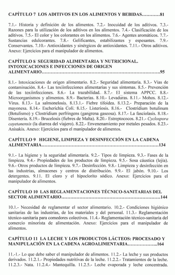 Este libro es en sí mismo un curso completo para el manipulador de alimentos, donde se explica de forma práctica y sencilla todo lo referente a los alimentos y bebidas, las condiciones del personal y de la empresa. También se incluyen en este libro unos conocimientos básicos sobre: La composición y propiedades de los alimentos y bebidas. Dietética y nutrición. Por último se estudian casos prácticos de: Manipulación de carnes, pescados, lácteos, frutas, verduras, huevos, charcutería, comidas preparadas, productos de panadería, repostería, aceites y grasas, conservas, frutos secos, bebidas, condimentos, especias, etc. y Manipulación de alimentos y bebidas en industrias alimentarias, almacenes, empresas de distribución, tiendas, supermercados, ferias, cátering, restaurantes, cafeterías, hoteles, etc. Al final de cada capítulo se incluyen ejercicios resueltos, que ayudarán tanto al profesor como al futuro manipulador en las tareas de enseñanza y aprendizaje. Es un libro de gran interés para industrias agroalimentarias, hoteles, restaurantes, cafeterías, bares, comedores colectivos, cátering, técnicos de alimentación, nutricionistas, cursos de formación, etc. Es el curso más moderno, completo y práctico que se ha hecho para la formación profesional del manipulador de alimentos. Todo en un solo libro.