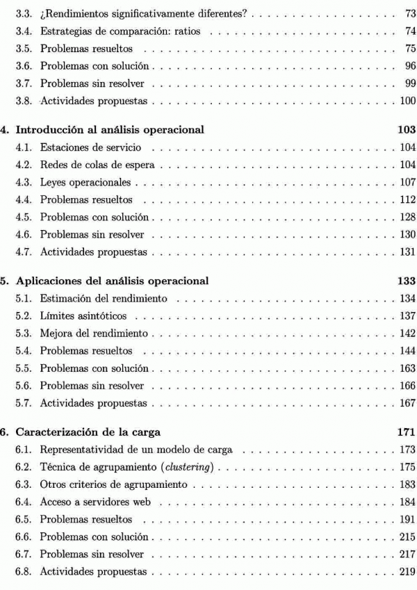 El presente libro de Molero, Juiz y Rodeño, Evaluación y modelo del rendimiento de los sistemas informáticos, presenta un magnifico resumen de técnicas cuantitativas simples que ayudan a dar respuestas a las cuestiones anteriores. Su enfoque no es el de la teoría, sino que en cada capítulo, después de un pequeño repaso teórico, se entra en lleno en numerosos problemas agrupados en tres categorías: los que presentan la resolución completa, aquellos que solo se da la solución y, finalmente, losa que se deja su resolución completa, a la discreción del lector.