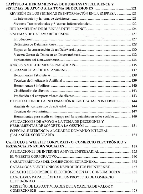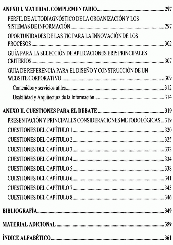 El papel que las TIC juegan en las organizaciones ha experimentado un cambio considerable en estos últimos años, pasando de ser simples herramientas de tratamiento de datos, para convertirse en la columna vertebral de cualquier organización tanto a nivel interno, como en lo referente a la relación con los agentes del entorno: clientes, proveedores, Administración Pública o la sociedad en general. En este libro se detalla cómo las TIC pueden contribuir a la mejora en las empresas y otras organizaciones, analizando las principales aplicaciones que permiten gestionar la información y el conocimiento, e incidiendo en cuáles son los factores clave a tener presentes para su correcta implantación. Se trata de una obra que aborda las Tecnologías de la Información y la Comunicación desde una perspectiva empresarial, centrándose más en la aplicación que en la tecnología en sí misma. Esta cuarta edición incorpora importantes cambios respecto a las anteriores, completando los contenidos tanto a nivel conceptual, como en las herramientas prácticas que se presentan a lo largo de la obra. La difusión alcanzada en las ediciones anteriores ha llevado a los autores a poner en marcha un blog para fomentar el debate y recoger ideas y sugerencias que se trasladarán a las futuras ediciones: