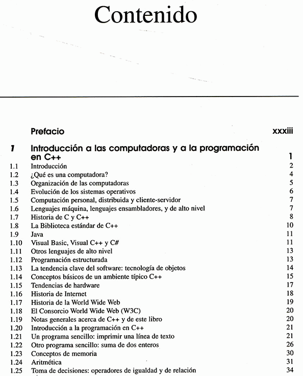Esta edición del libro de texto sobre C++ mas utilizado a nivel mundial, explica las extraordinarias herramientas de C++ y prensa un ejemplo practico opcional sobre el diseño orientado a objeto y la implementan con UML (lenguaje unificado para modelado); también presenta una introducción al desarrollo de aplicaciones Web de n niveles con CGL.