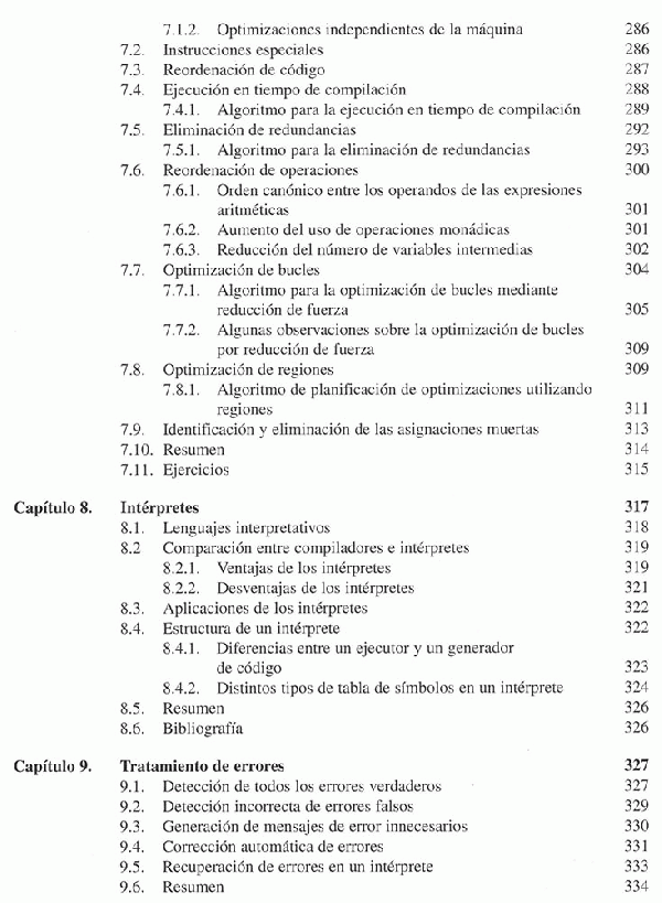 Resumen: El libro describe con detalle y ejemplos las distintas fases del proceso de compilación o interpretación y los algoritmos que se pueden utilizar para implementarlos.