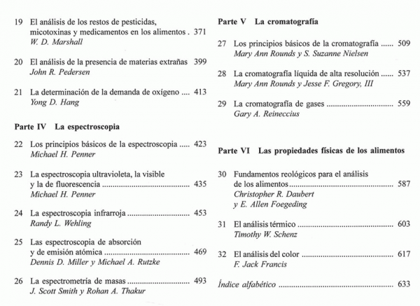 Análisis y composición de los alimentos, las propiedades químicas y las características de los alimentos, la espectroscopia, la cromatografia, las propiedades físicas de los alimentos.