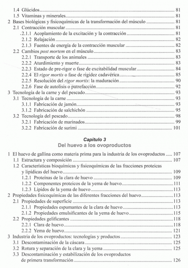Tecnología de los productos alimentarios Contenido: Introducción - Primera parte: Bioquímica y tecnología de los productos de origen animal, de la leche a los productos lácteos, del músculo a la carne y a los derivados cárnicos, del huevo a los ovoproductos.