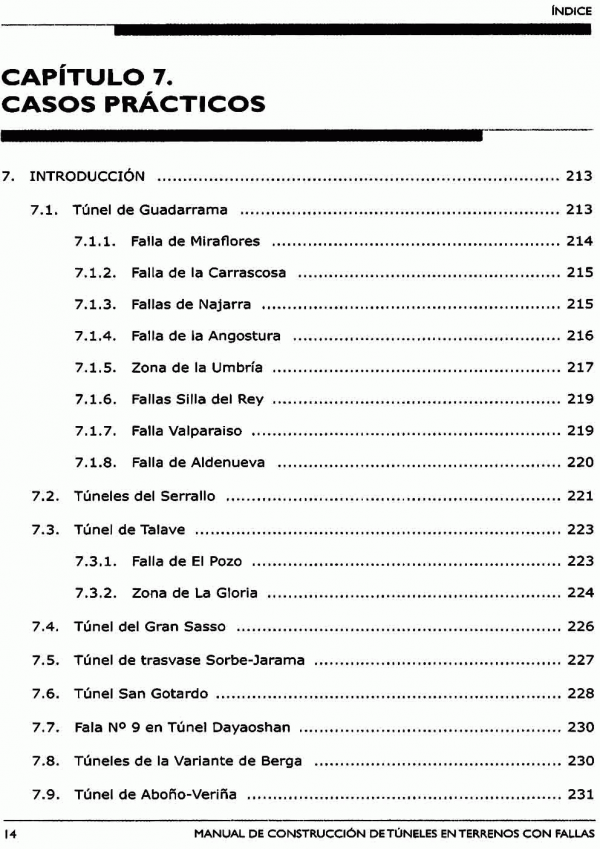 Tiene como objetivo aportar al lector las diferentes afecciones que se producen en un túnel ligadas a la presencia de fallas, así como las técnicas más habituales para la investigación, caracterización y construcción en terrenos fallados y como solventarlas.
