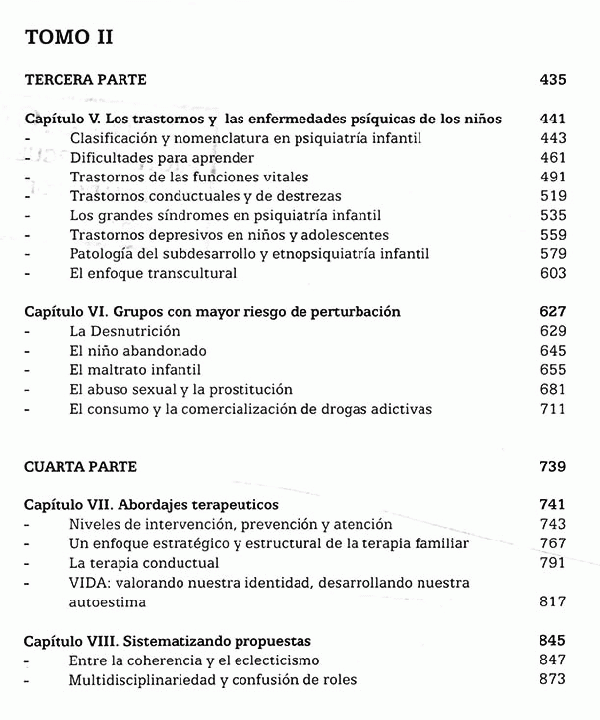 la segunda parte consta de tres capítulos que están dedicados: el abordaje de la salud mental infantil.