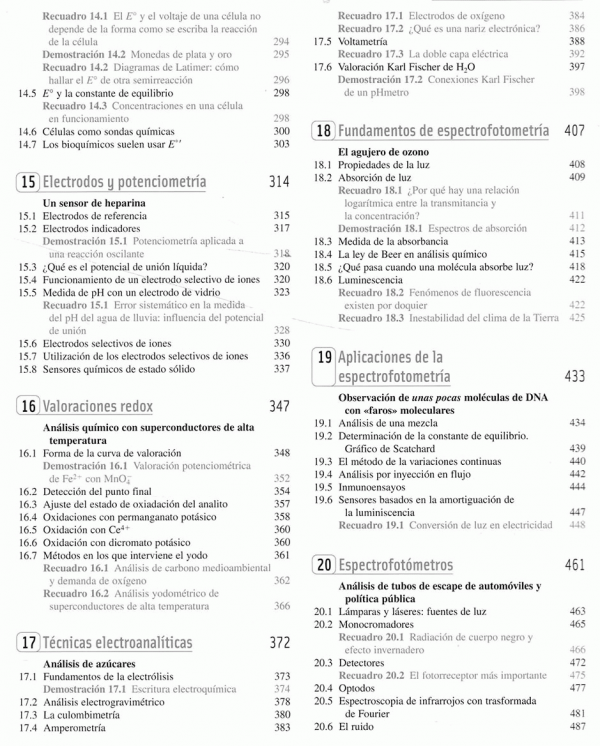 Además de la actualización y revisión de todo el libro, esta nueva edición introduce un capítulo independiente (el 22) sobre Espectrometría de masas y otro nuevo, el capítulo 29, sobre garantía de calidad. Los temas han sido introducidos e ilustrados con ejemplos concretos de interés y extraídos del mundo real. Una sucesión de recuadros a lo largo de cada capítulo amplían y explican puntos importantes que hay en el texto. Los ejemplos resueltos están pensados como una herramienta pedagógica importante para enseñar a resolver problemas. Las hojas de cálculo siguen teniendo gran importancia. En esta edición se introducen por primera vez algunas herramientas muy útiles de Microsoft Excel, como el trazado de gráficos, las funciones estadísticas, la resolución de ecuaciones.