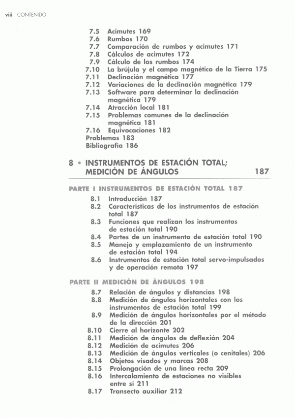 En esta undécima edición se presentan los conceptos básicos de cada una de la áreas fundamentales de la topografía moderna. Diseñada para servir como libro de texto en los cursos de topografía y de ingeniería del primero y segundo años de la carrera, en esta obra se enfatiza la teoría de errores en el trabajo de topografía, así como al final de cada capítulo se listan los errores y las equivocaciones comunes que están relacionados con el tema abordado. Para esta edición se han añadido secciones nuevas sobre instrumentos de escaneo con láser y sus aplicaciones, en los capítulos 16, 23 y 27; así mismo se han agregado procedimientos de cálculo para las proyecciones cartográficas en el capítulo 20.Además de los cambios mencionados, el material complementario que se encuentra en la página web del libro incluye versiones actualizadas de los programas Stats, WOLFPACK y Matriz, diseñados para cálculos estadísticos, cálculos para poligonales cerradas, abiertas, radicales; cálculos de áreas; reducción del acimut astronómico; transformaciones bidimensionales de coordenadas; cálculos de curvas horizontales y verticales; y ajustes con mínimos cuadrados.Diseñada para servir como libro de texto en los cursos de topografía y de ingeniería del primero y segundo años de la carrera, en esta obra se enfatiza la teoría de errores en el trabajo de topografía, así como al final de cada capítulo se listan los errores y las equivocaciones comunes que están relacionados con el tema abordado. Para esta edición se han añadido secciones nuevas sobre instrumentos de escaneo con láser y sus aplicaciones, en los capítulos 16, 23 y 27; así mismo se han agregado procedimientos de cálculo para las proyecciones cartográficas en el capítulo 20.Además de los cambios mencionados, el material complementario que se encuentra en la página web del libro incluye versiones actualizadas de los programas Stats, WOLFPACK y Matriz, diseñados para cálculos estadísticos, cálculos para poligonales cerradas, abiertas, radicales; cálculos de áreas; reducción del acimut astronómico; transformaciones bidimensionales de coordenadas; cálculos de curvas horizontales y verticales; y ajustes con mínimos cuadrados.Para esta edición se han añadido secciones nuevas sobre instrumentos de escaneo con láser y sus aplicaciones, en los capítulos 16, 23 y 27; así mismo se han agregado procedimientos de cálculo para las proyecciones cartográficas en el capítulo 20.Además de los cambios mencionados, el material complementario que se encuentra en la página web del libro incluye versiones actualizadas de los programas Stats, WOLFPACK y Matriz, diseñados para cálculos estadísticos, cálculos para poligonales cerradas, abiertas, radicales; cálculos de áreas; reducción del acimut astronómico; transformaciones bidimensionales de coordenadas; cálculos de curvas horizontales y verticales; y ajustes con mínimos cuadrados.
