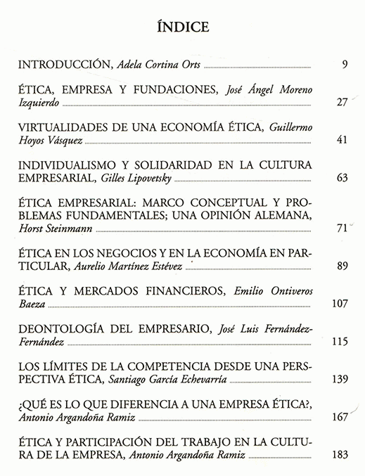 El presente volumen forma parte de un proyecto de investigación que bajo los auspicios de la fundación argentaria, ha venido desarrollando un equipo de trabajo compuesto esencialmente por especialistas en ética económica y empresarial.