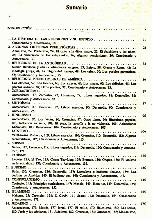 Como dominar la historia de las religiones una exposición concisa y objetiva de las creencias que han impulsado a la humanidad. La espiritualidad del hombre prehistórico. La religión de las civilizaciones perdidas. Mitología griega y romana. Islamismo, budismo y otras religiones orientales. El judaísmo. El cristianismo. Religiones de América precolombina. Las iglesias evangélicas. Las sextas científicas del siglo XX.