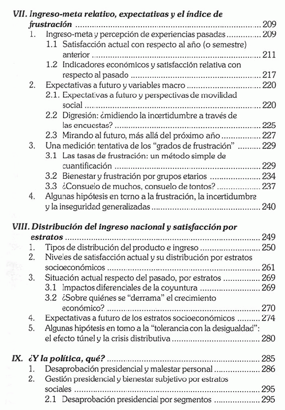 En este ensayo se estudia las relaciones entre el bienestar y la bonanza económica macro a lo largo del período que se extiende desde fines de los años 1980 y principios de 2004. En los diez capítulos que configuran este trabajo, se procede a ensayar un análisis global del tema, partiendo de las variables más comunes y simples que se acostumbran aducir para evaluar o estimar el ‘bienestar’, hasta llegar a algunas de las más complejas y discutibles.