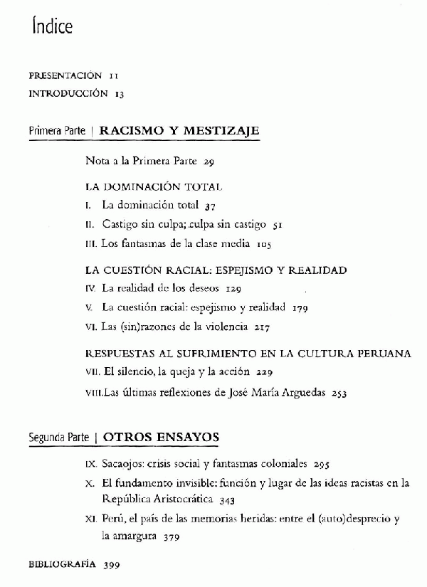 La variedad de caminos con que Gonzalo Portocarrero se acerca al racismo en la sociedad peruana es congruente con la complejidad de un tema que, de inmediato, el mismo autor define como equívoco y resbaladizo. La razón es que por lo menos desde mediados del siglo XX, tal como lo plantea Portocarrero, el racismo es entre nosotros una práctica sin discurso y una entidad sin rostro aparente. Esta falta de estatuto, siguiendo al autor, se confunde fácilmente con una falta de sustancia, en total contraste con el poder determinante del racismo en la vida de los peruanos. El asunto se complica puesto que toda la eficacia del racismo en los comportamientos y actitudes transcurre en silencio, por decirlo así, de espaldas a los símbolos y la ley donde, por el contrario, imperan la igualdad de oportunidades y la defensa de la diversidad, aunque solo sea con la fuerza de las palabras. Ausente en el discurso oficial —incluso combatido dentro de él—, e incompatible a menudo con el aspecto de los que lo representan, el racismo parece por lo tanto solo un residuo verbal de tiempos pasados, “imágenes... que ya no corresponden a realidades definidas” como dice Portocarrero. Es precisamente lo que sugiere la vasta predominancia del mestizaje, en el que Portocarrero reconoce un doble efecto: por un lado, contribuir a relativizar la discriminación racial, por el otro, al hacerla invisible, ayudar a perpetuarla. Hacer el deslinde y trabajar a partir de la línea divisoria es el gran mérito de este libro
