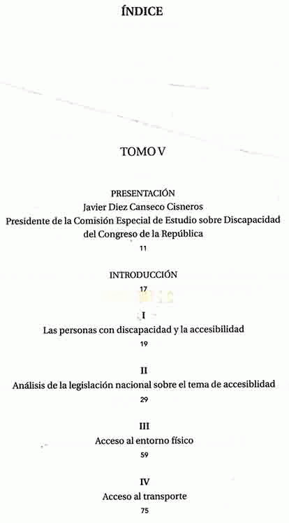 Discapacidad y Accesibilidad: La dimensión desconocida / Jaime Huerta Peralta; Edición y Coordinación Liliana Peñaherrera; Presentación Javier Diez Canseco Cisneros [Impreso] Tomo V