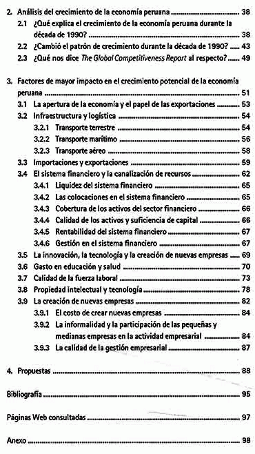 La competitividad peruana, analizada a través de la utilización de los indicadores de global competitiveness report, se estudia a la luz de la trayectoria de crecimiento que ha venido registrado el país, a fin de identificar cambios del patrón.