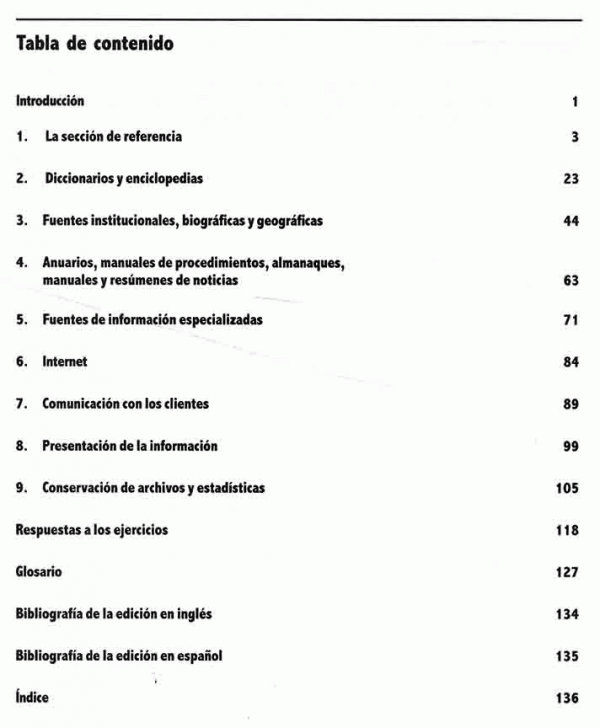 Servicio de referencia cubre varias de las formas industriales relacionada con el acceso del cliente a la información. Contiene sugerencias, ejercicios con respuestas, un glosario, bibliografia e indice.