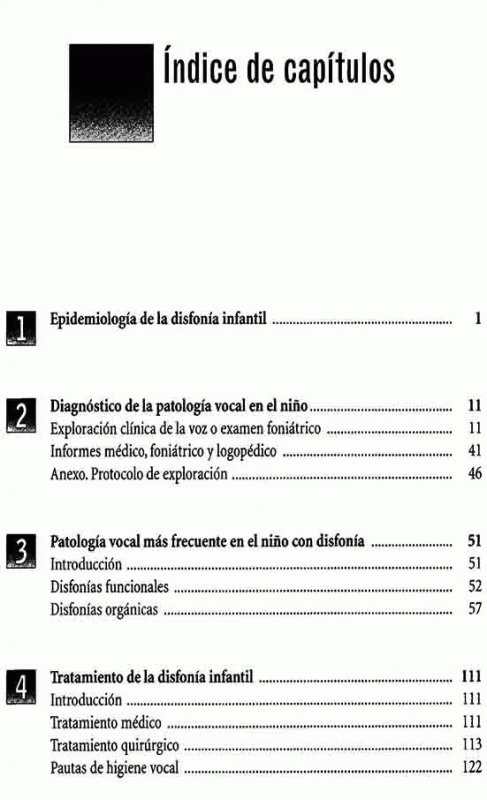 Esta obra trata de la detección, el diagnostico y el tratamiento de la disfonia infantil.