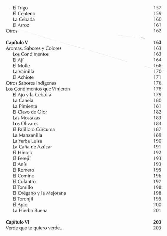 Contiene un poco de historia del consumo de los cultivos andinos y los productos venidos de Europa como la maca, la oca, el tomate, lo citricos, el platano, los condimentos, las carnes, bebidas, etc.