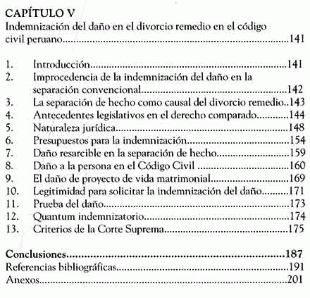 Trata sobre las diferencias de la indemnización del daño en el divorcio sanción y en el divorcio remedio en el Código Civil peruano.