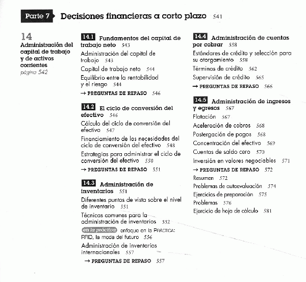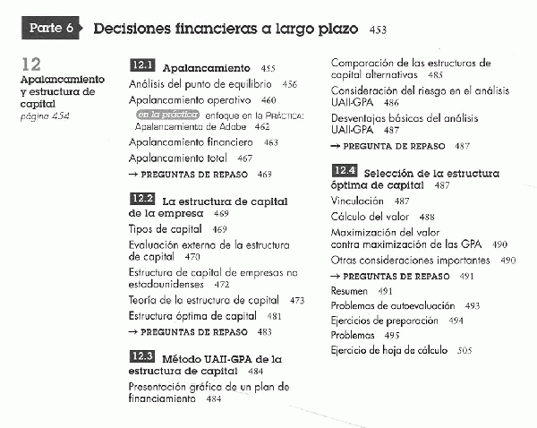 Una vez que se desarrolla un concepto específico, se presentan ejemplos que ilustran su aplicación y consolidan en la mente del estudiante los conceptos financieros necesarios en la toma de decisiones, así como sus consecuencias.