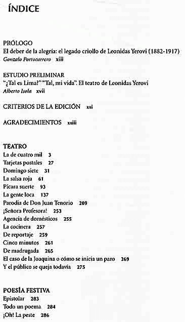 El teatro en verso de Yerovì renueva el teatro costumbrista con un humor moderno moderno, pues abandona el afán didáctico o modernizador. personajes definidos, situaciones dramáticas y un lenguaje ágil y flexible son sus rasgos generales aparece , representada en él, la clase media limeña con sus miserias(pobreza, frustración y egoísmo) y posibilidades (aventura, transformación). Es representación cabal de la incipiente sociedad moderna en una ciudad anclada en la tradición que empieza a ser cosmopolita.