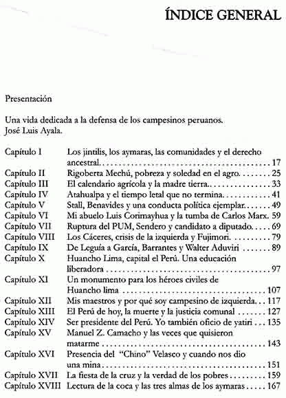 Este libro registra una distinta versión de los hechos. Saturnino Corimayhua habla desde adentro, no se trata de la visión de un intelectual mestizo, sino de un campesino Aymara nacido y crecido en la comunidad campesina de Huancho.