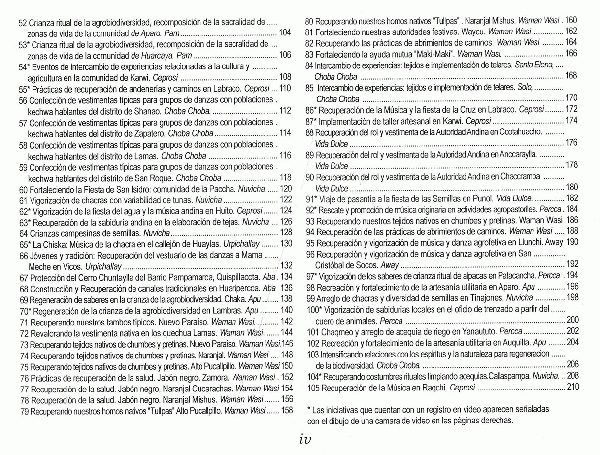 Busca vigorizar la tradición de las comunidades andinas y altoamazónicas en los diversos aspectos de su vida: cultivo de chacras, crianza de animales nativos, recuperación de sus artes (tejido, cerámica, música, danza).