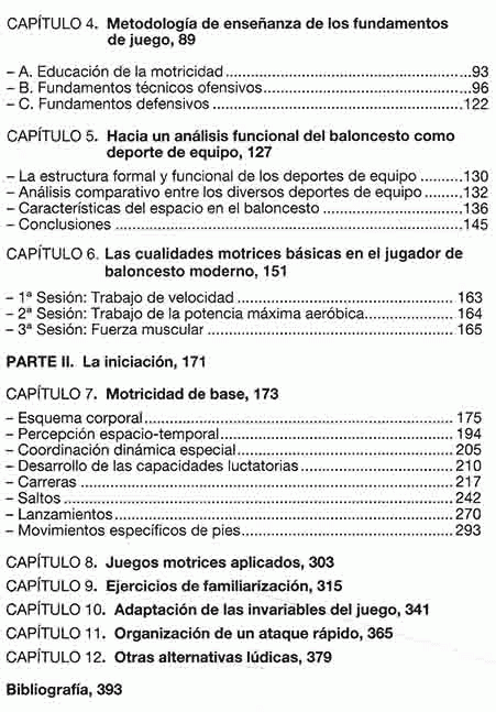 La presente obra está estructurada en dos grandes apartados, uno práctico, el más importante en una obra operacional como ésta y del que ya nos hemos ocupado y uno teórico en el que planteamos cinco grandes temas que van desde una aproximación histórica en torno al origen y evolución del baloncesto, hasta la presentación de una propuesta pedagógica y una metodología aplicada, pasando por un análisis funcional del baloncesto como deporte de equipo; para concluir con la presentación de un trabajo sobre el desarrollo de las cualidades físicas en el jugador de baloncesto moderno que creemos puede ser útil para su aplicabilidad y accesibilidad, no exenta de rigor para los profesionales que estén interesados en esta importante parcela de la preparación de un equipo.