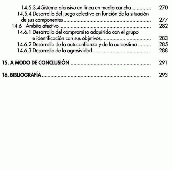 Presenta también, un compendio de situaciones de juego bien racionalizadas expresadas en ejercicios prácticos de gran interés para el entrenador.