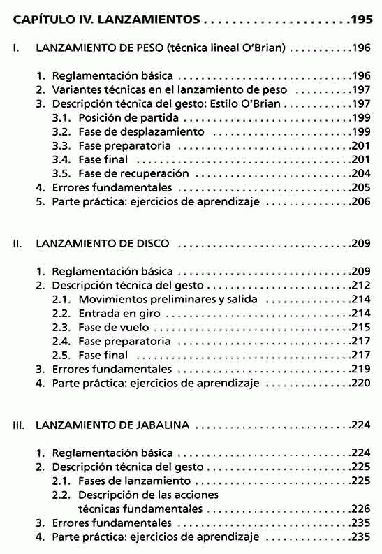 En este libro, los autores, profesores universitarios y entrenadores nacionales de atletismo, presentan todas las técnicas del atletismo, tanto en carreras y marchas (salidas, relevo, vallas) como en concursos ( saltos y lanzamientos). para cada prueba se detalla los aspectos mas importantes del reglamento, se analiza los fundamentos mecánicos y técnicos de detallan los errores fundamentales y por ultimo, se presenta una amplia gama de ejercicios acompañados de fotoseriaciones que muestran la ejecución correcta.