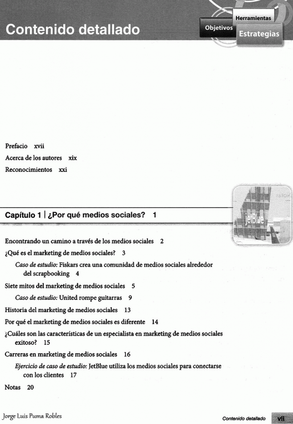 Marketing para Medios Sociales. Un planteamiento estratégico es un libro de texto pionero en el campo y cuenta con una distintiva base conceptual y una estrategia práctica para desarrollar planes de marketing para medios sociales.Aborda las reglas de compromiso y la ética de los medios sociales para comportarse adecuadamente como especialistas en marketing en la red social. Con estos lineamientos en mente, se examinan a detalle las tácticas de marketing más productivas de cada una de las principales plataformas de me dios sociales. Estas tácticas de plataforma específica, junto con todo el material de procedimiento incluido en el libro, se unen en el capítulo final para crear un plan de marketing exhaustivo para medios sociales, con explicaciones e ilustraciones detalladas de un plan aplicado en el mundo real. Se considera ampliamente el monitoreo, la evaluación y la mejora de la implementación de las iniciativas de marketing para medios sociales.Además se introducen y explican las mediciones cuantitativas y cualitativas de medios sociales más útiles, junto con diferentes formas de calcular el retorno sobre la inversión de una organización a partir de las actividades de marketing para medios sociales.Revisión técnica: Mtra. María de los Ángeles Ramos Solano
