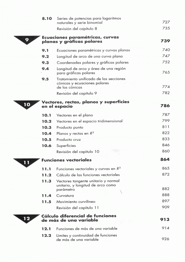 Este texto aborda los siguientes temas: funciones, limites y continuidad, Aplicaciones adicionales de la integral definida, funciones vectoriales, investigación múltiple.