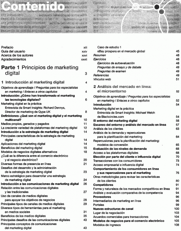 Marketing digital proporciona una guía práctica y completa sobre la manera en que las empresas pueden aprovechar al máximo los medios digitales para cumplir con sus objetivos de marketing. La obra vincula la teoría del marketing con la experiencia práctica de negocios mediante entrevistas y casos de estudio de empresas de vanguardia, como eBay y Facebook, a fin de ayudar a los estudiantes a comprender el marketing digital en el mundo real.