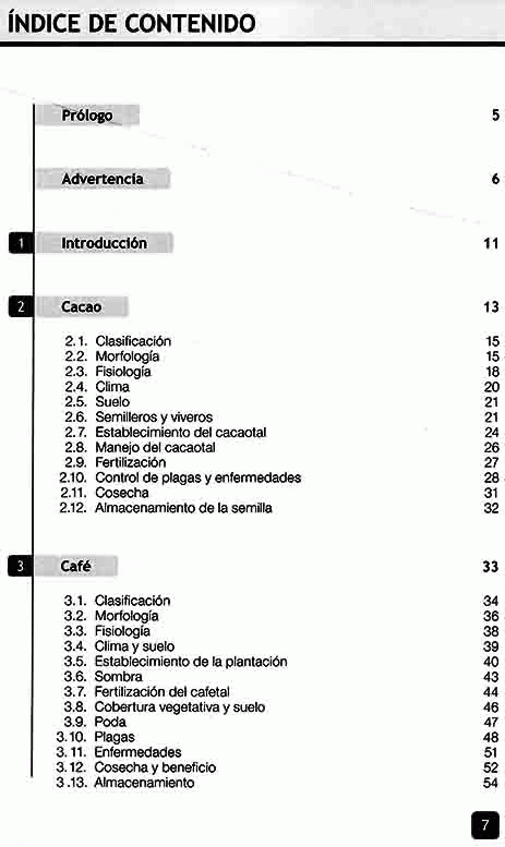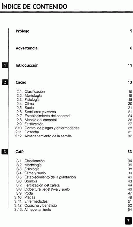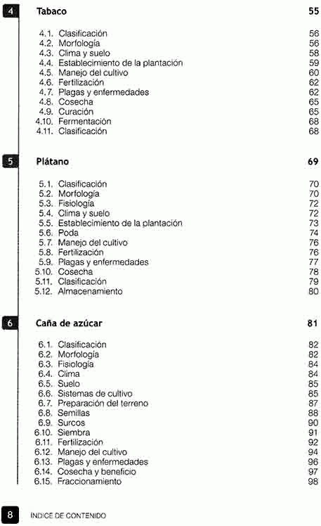 Los cultivos de plantación ocupan áreas relativamente grandes y exigen tecnología agrícola de tipo industrial para la optimización de las cosechas. Tanto los grandes como los pequeños productores - quienes generalmente cultivan plantaciones a la manera tradicional - se beneficiarán con este manual que expone con detalle todos los factores que deben considerar para proteger sus cultivos, desde la germinación de las semillas y el establecimiento de la plantación, hasta el control de malezas, plagas y enfermedades.
