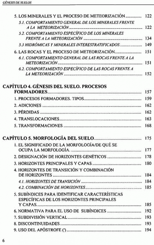 En este libro se pretende introducir al alumno en una serie de conceptos de suma importancia para comprender la génesis y distribución de los suelos, así como ofrecerle las herramientas necesarias para poder describir los perfiles del suelo. En él se aborda el concepto de suelo, su composición y funciones, el estudio de los factores y de los procesos formadores, la morfología y, finalmente la clasificación del suelo.
