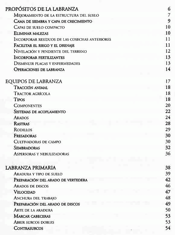 En el presente manual encontrará una exposición clara y sencilla de los procedimientos de labranza y el equipo y maquinaria que se requieren, según los cultivos de que se trate y de acuerdo con las necesidades del agricultor.