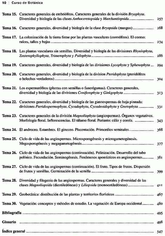 La experiencia de los autores, adquirida tras casi tres décadas de docencia universitaria en la disciplina de Botánica, les llevó a sintetizar y poner al día los conocimientos básicos de la misma, conforme a las directrices generales de diferentes licenciaturas y diplomaturas en la que esta ciencia se estudia. El libro se estructura en treinta temas que abordan los contenidos generales de la Botánica de acuerdo con las referidas directrices. A lo largo de los mismos se tratan las bases de la organización vegetal, los principales tipos estructurales, ciclos vitales de los vegetales, así como su diversidad y tendencias evolutivas, desde los organismos más sencillos del reino Monera hasta los más complejos del reino Plantae. Además se proporcionan los conocimientos básicos para el estudio de la vegetación, sintetizando los conceptos generales de biogeografía y bioclimatología. Como anexo al temario, se incluye un extenso y detallado glosario terminológico con cerca de 1.700 vocablos, que completan y resumen los contenidos didácticos de la obra, finalizando con un minucioso índice de términos cuyo número supera los 5.000.