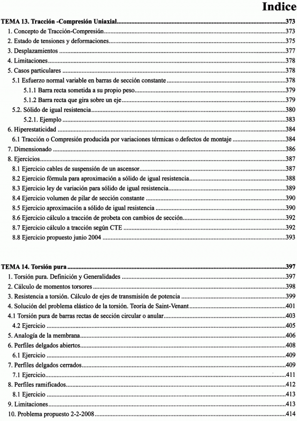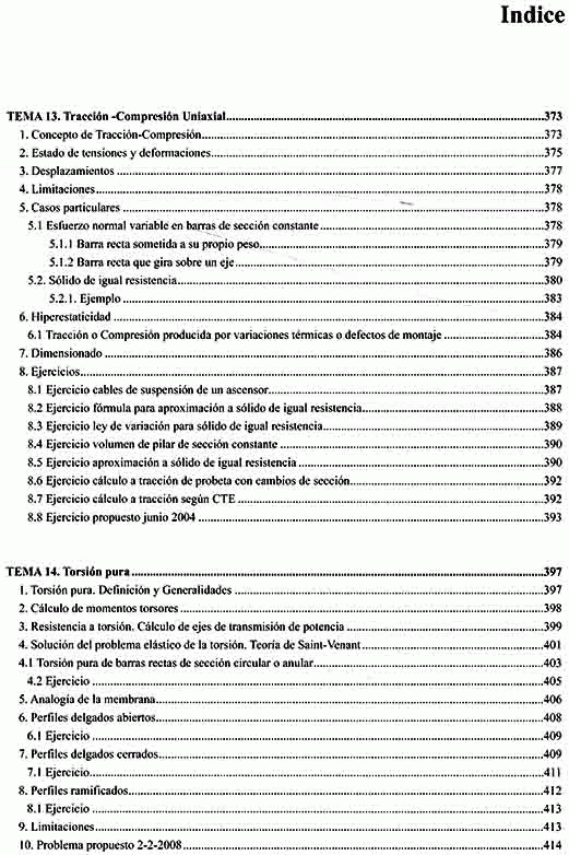 En este tomo II, que ahora nos satisface presentar,donde se aplica la formulación de forma sistemática a los tipos de solicitación: tracción-compresión uniaxial, torsión, flexión pura y flexión simple, flexión desviada y flexión compuesta, y solicitaciones combinadas.En cada uno de los capítulos se incluyen numerosos ejemplos, ejercicios y problemas propuestos en examen, en su mayoría inspirados en problemas reales del ámbito de la ingeniería.