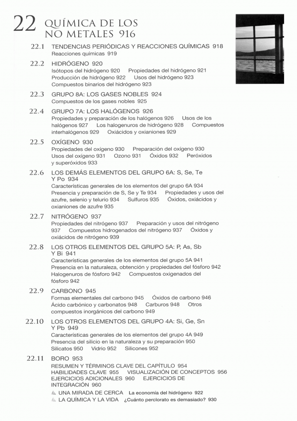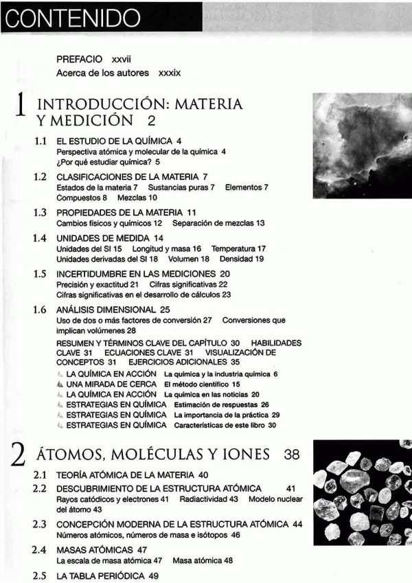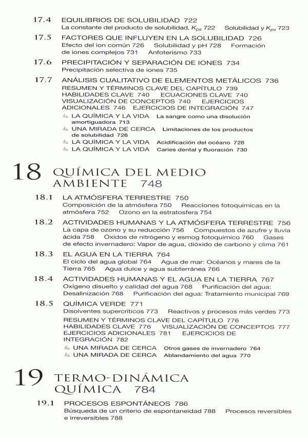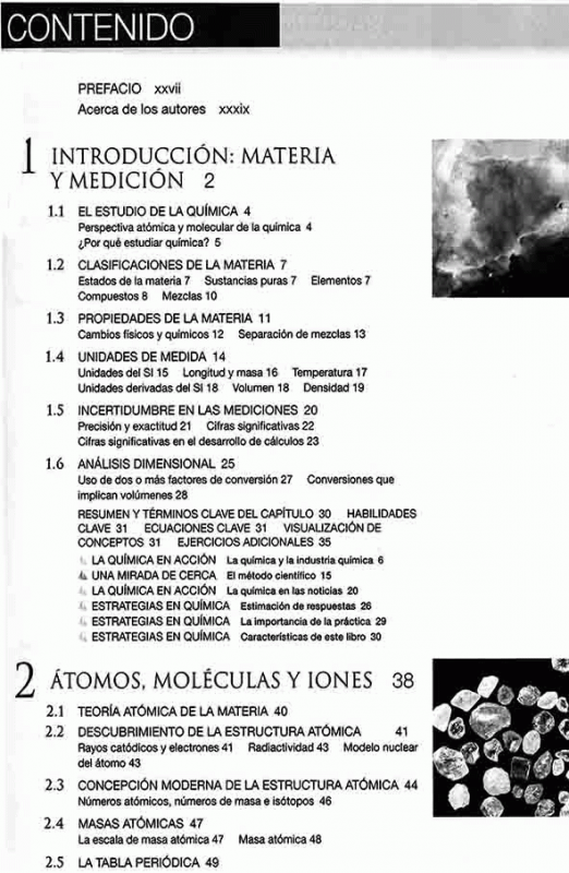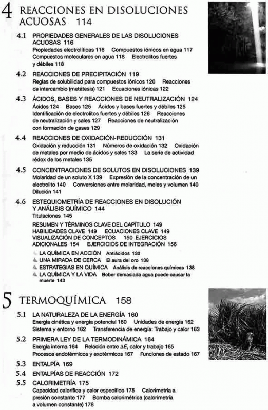 Esta edición tiene la revisión más ambiciosa realizada hasta la fecha. El libro enfatiza la comprensión de conceptos en lugar de la simple manipulación algorítmica en la solución de problemas. Provee los fundamentos de la química moderna que los estudiantes necesitan para descubrir sus intereses profesionales y para prepararse para cursos más avanzados. Destaca muchas aplicaciones importantes de la química en la vida real. Refleja el carácter dinámico y cambiante de la química en la sociedad e incorpora nuevas metodologías educativas surgidas de la investigación, incluyendo el uso de Internet y herramientas para la clase basadas en la computadora, particularmente el uso de MasteringChemistry.