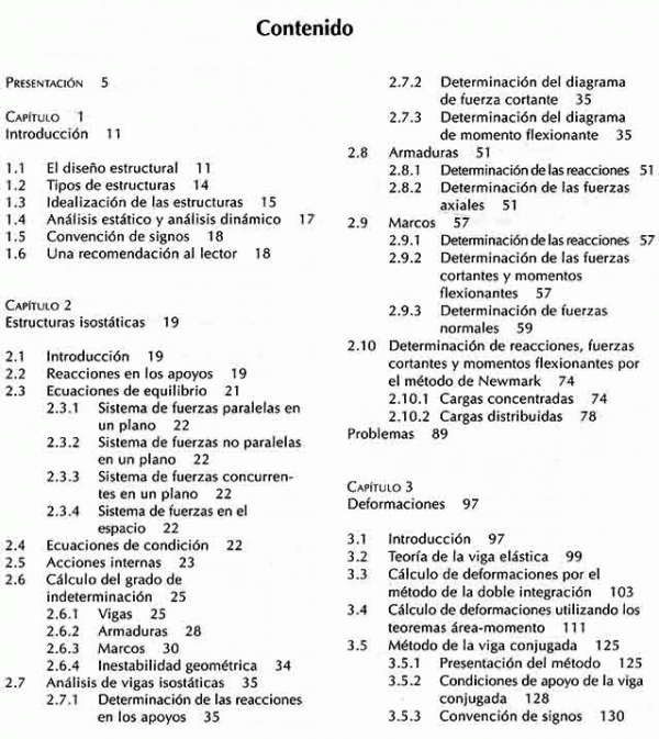 Este libro ha sido creado con el propósito fundamental de ayudar a profesores y alumnos en la enseñanza y el aprendizaje del análisis estructural- Esta disciplina constituye uno de los pilares de la carrera de ingeniería civil y es también importante en algunas otras licenciaturas, como ingeniería mecánica y arquitectura. Su dominio es indispensable para los profesionales que se dedican al diseño de algunas de las obras más espectaculares que construye el ser humano: rascacielos, puentes, presas, plantas industriales, plataformas marítimas, etcétera. El análisis estructurales, asimismo, una de las asignaturas que más contribuyen a la formación de los alumnos, a su entrenamiento en el manejo de conceptos abstractos y a la adquisición de habilidades intelectuales requeridas para el ejercicio profesional de la ingeniera. Por estas razones ha ocupado. desde hace mucho tiempo, un lugar destacado en los planes de estudio.