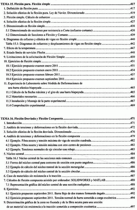 En este tomo II, que ahora nos satisface presentar, dónde se aplica la formulación de forma sistemática a los tipos de solicitación: tracción-compresión uniaxial, torsión, flexión pura y flexión simple, flexión desviada y flexión compuesta, y solicitaciones combinadas. En cada uno de los capítulos se incluyen numerosos ejemplos, ejercicios y problemas propuestos en examen, en su mayoría inspirados en problemas reales del ámbito de la ingeniería.
