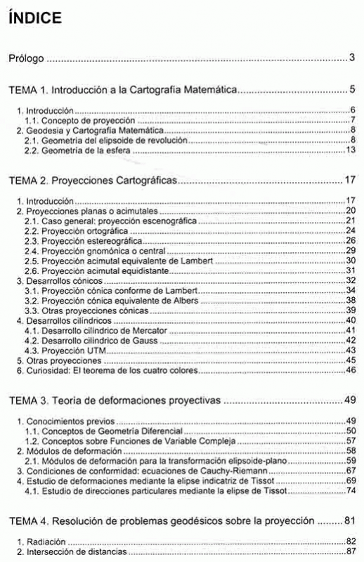 El presente texto es una exposición concisa de los Fundamentos de la cartografía matemática, disciplina cuyo objeto de estudio son las proyecciones cartográficas y su aplicación a los problemas que plantean materias como la geodesia, la Teledeccion o los Sistemas de Información Geografía.