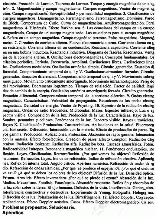Dado que la duración del dictado y desarrollo del curso de Física III es de 16 se manas el contenido de este texto se ha distribuido en 15 capítulos, siendo algunos de los te mas opcional. De otro lado, la obra está dividida en la forma que los autores creen que es la más conveniente, es decir, primero se presenta la teoría completa de los temas tratados en el capítulo, seguida de una cantidad suficiente de problemas propuestos, las que se han seleccionado cuidadosamente y organizado de una manera gradual, según el grado de dificultad; posteriormente se presenta la solución completa, detallada y minuciosa de cada uno de estos problemas propuestos, para lo cual, se ha utilizado el método estructural. También, al final del texto se presenta un apéndice que contiene equivalencias, constantes físicas, facto res de conversión, prefijos del sistema internacional (S.I.), … etc.